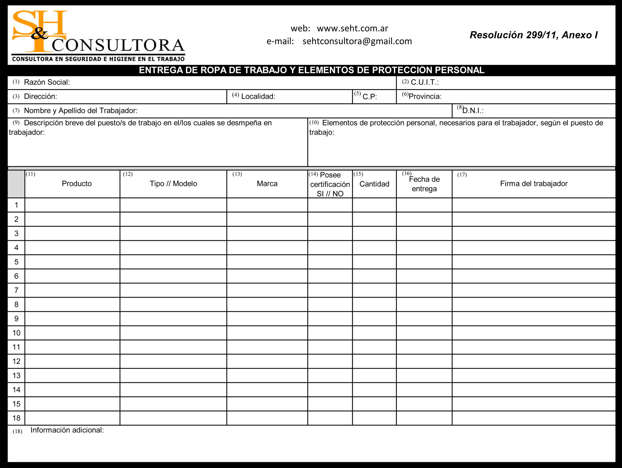 RESOLUCIÓN 299 / 11 - PROVISIÓN DE ELEMENTOS DE PROTECCIÓN PERSONAL - EPP