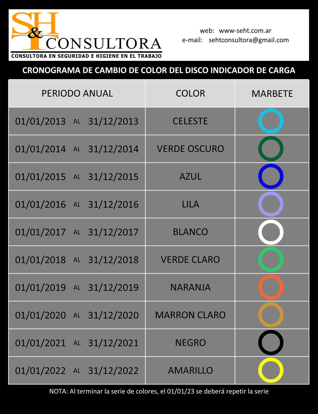 CRONOGRAMA DE CAMBIO DE COLORES DEL INDICADOR DE CARGA DE MATAFUEGOS - (MARBETE)